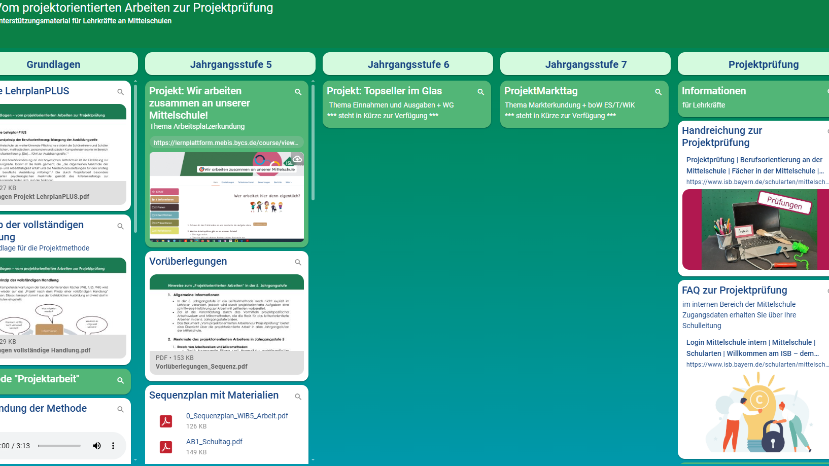 - Informationen zu den grundlegenden Inhalten des LehrplanPLUS, zur Projektmethode sowie zur Leittextmethode,