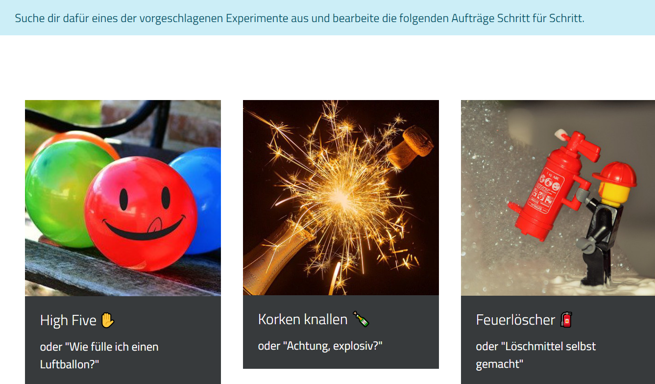 Nach der Auswahl des Lerngegenstands unterstützen Erklärvideos und Dokumentationstools die Schülerinnen und Schüler beim eigenständigen Experimentieren. Weitere individuelle Hilfestellungen und praktische Tipps können auch zwischen den Gruppen in einem Forum ausgetauscht werden. Die digitale Pinnwand bietet am Ende die Möglichkeit, die Versuche kollaborativ auszuwerten und zu vergleichen.