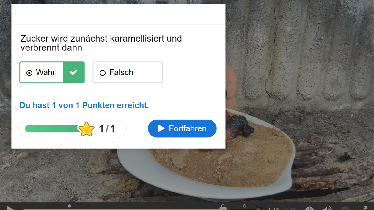Nachdem die Schülerinnen und Schüler durch ein kurzes Motivationsvideo zum Thema hingeführt wurden, können sie durch die interaktive Aufgabenstellung eigenverantwortlich die Entstehung von Kohlenstoffdioxid bei chemischen Reaktionen erarbeiten. Die interaktiven Übungen und Videos zu Beginn aktivieren individuelles Vorwissen und vermitteln die Grundfertigkeiten. Dank des unmittelbaren, automatisierten Feedbacks der H5P-Übungen kann jeder Lernende seinen Wissensstand überprüfen und ggf. die Übung zur Sicherung wiederholen.