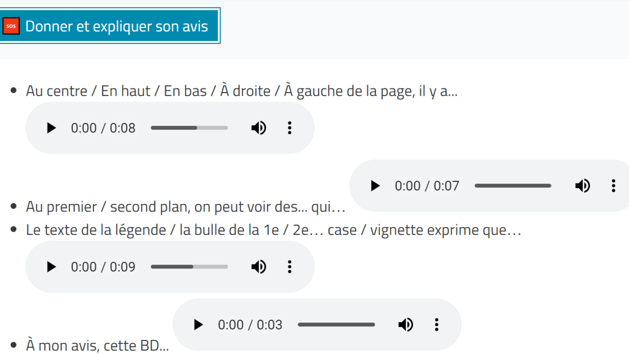 Die anschließende Audio-Kommentierung der BDs der Klassenkameradinnen und -kameraden führt schließlich zur Gruppendiskussion und der gemeinsamen Entscheidung, in welcher der erstellten BDs das Zusammenspiel von Wort und Bild als besonders gelungen empfunden wird. Diese Diskussion in der Lerngruppe findet im datenschutzrechtlich und pädagogisch geschützten Raum eines mebis-Forums statt, das die sozialen Medien simuliert und so den Erwerb von Medienkompetenz fördert: Die Lernenden üben sich im Kompetenzbereich „Kommunizieren und Kooperieren“ und vertiefen ihre Kompetenz im Bereich „Analysieren und Reflektieren“, indem sie sich mit dem Einfluss der Kommentare auf das eigene Produkt und die Produkte der anderen auseinandersetzen. Das Livre de BD de notre classe als digitales Endprodukt der kooperativen Arbeit kann über den Klassenverband hinaus z. B. auf der Schul-Website veröffentlicht und so auch einem größeren Publikum präsentiert werden.