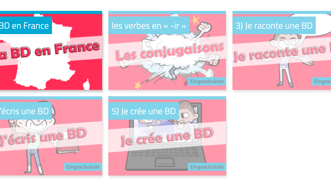 Die Aufgabe besteht aus fünf aufeinander aufbauenden Bereichen, wovon der erste den direkten Bezug zur Literaturform der Bande Dessinée, zu deren Stellenwert in Frankreich und damit zu gleichaltrigen französischen BD-Fans herstellt. Der letzte Bereich schließt mit dem eigenen digitalen Produkt, dem kooperativ erstellten Livre de BD de notre classe ab. Innerhalb der einzelnen Bereiche ermöglichen Feedback-Funktionen und didaktisch verknüpfte Bedingungen die lernerindividuelle differenzierte Bearbeitung. Digitale Abgaben stellen den Kontakt zur Lehrkraft und auch zur Lerngruppe her und führen zur gemeinsamen Besprechung der erstellten BDs im Klassenverband.