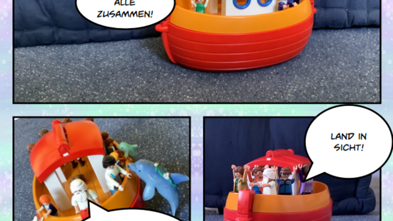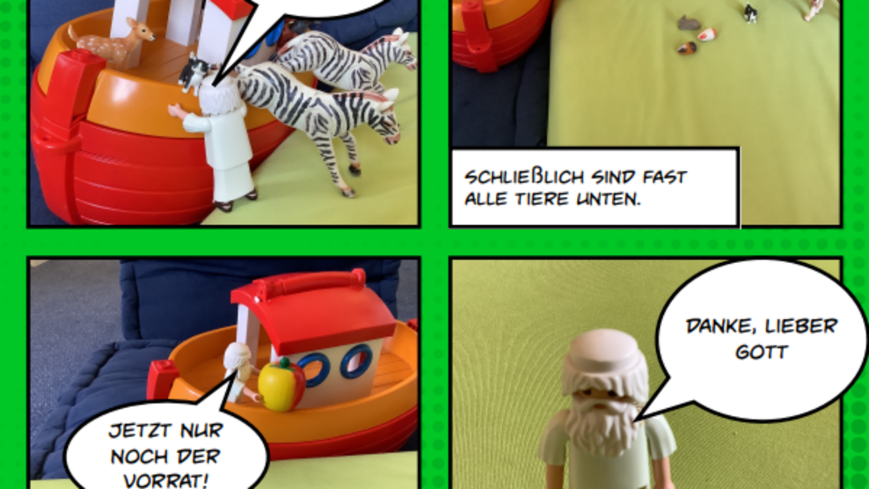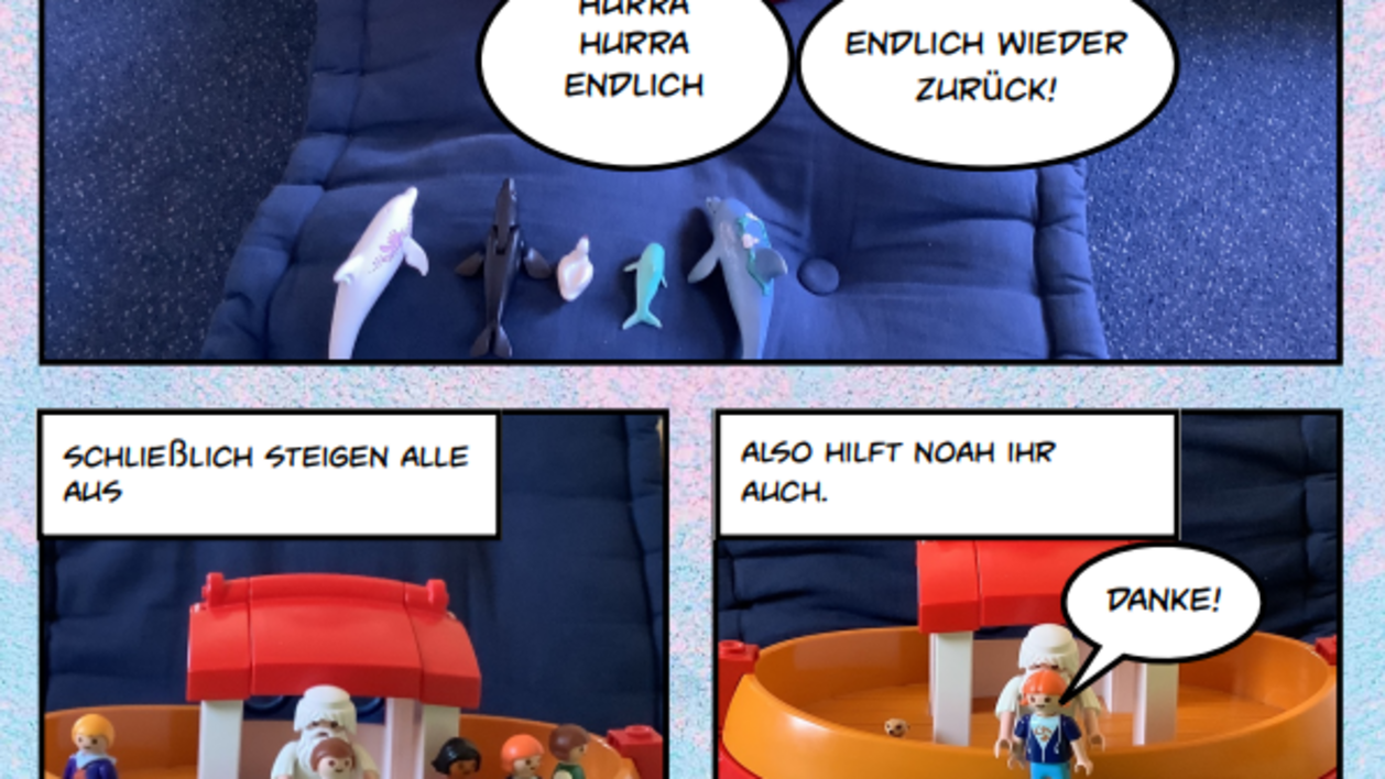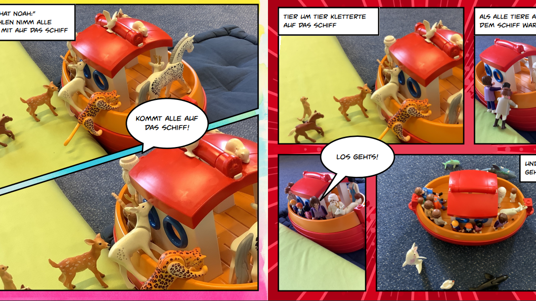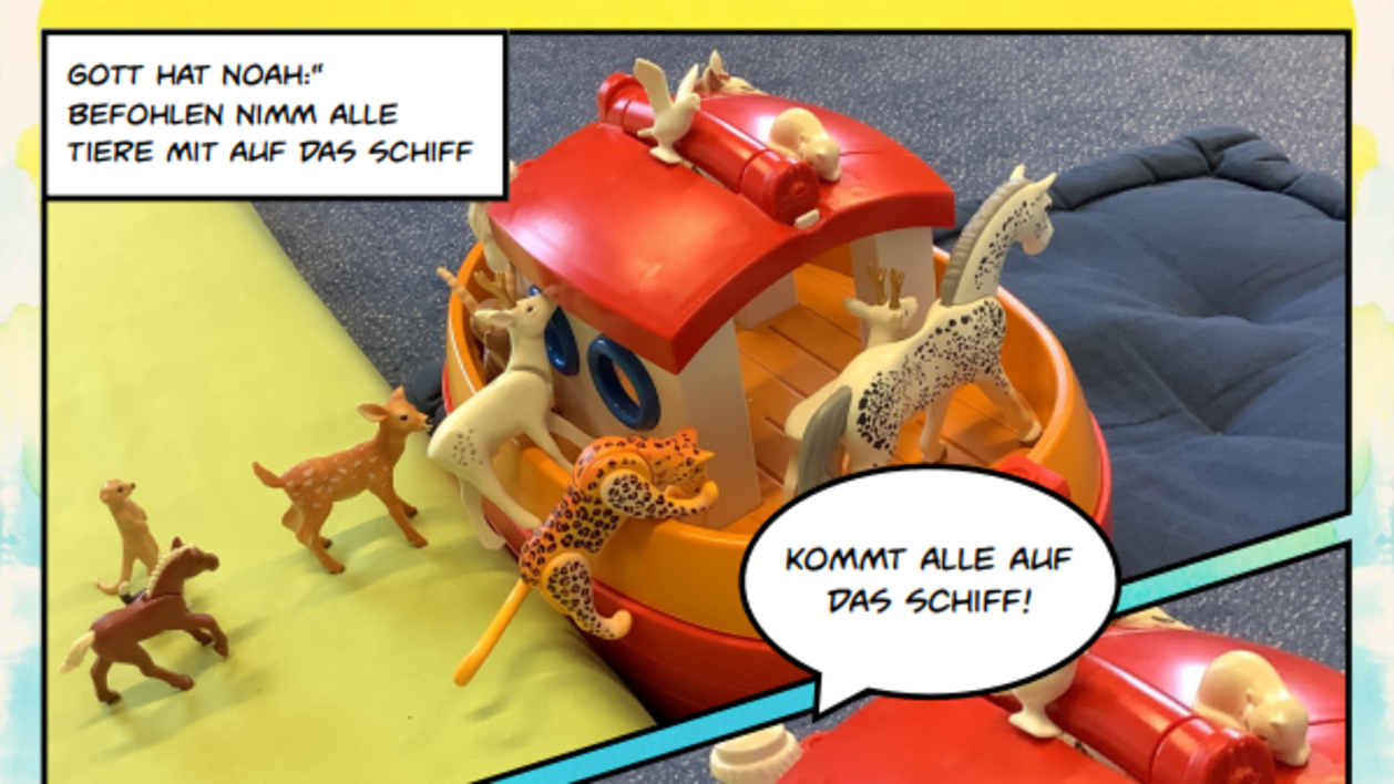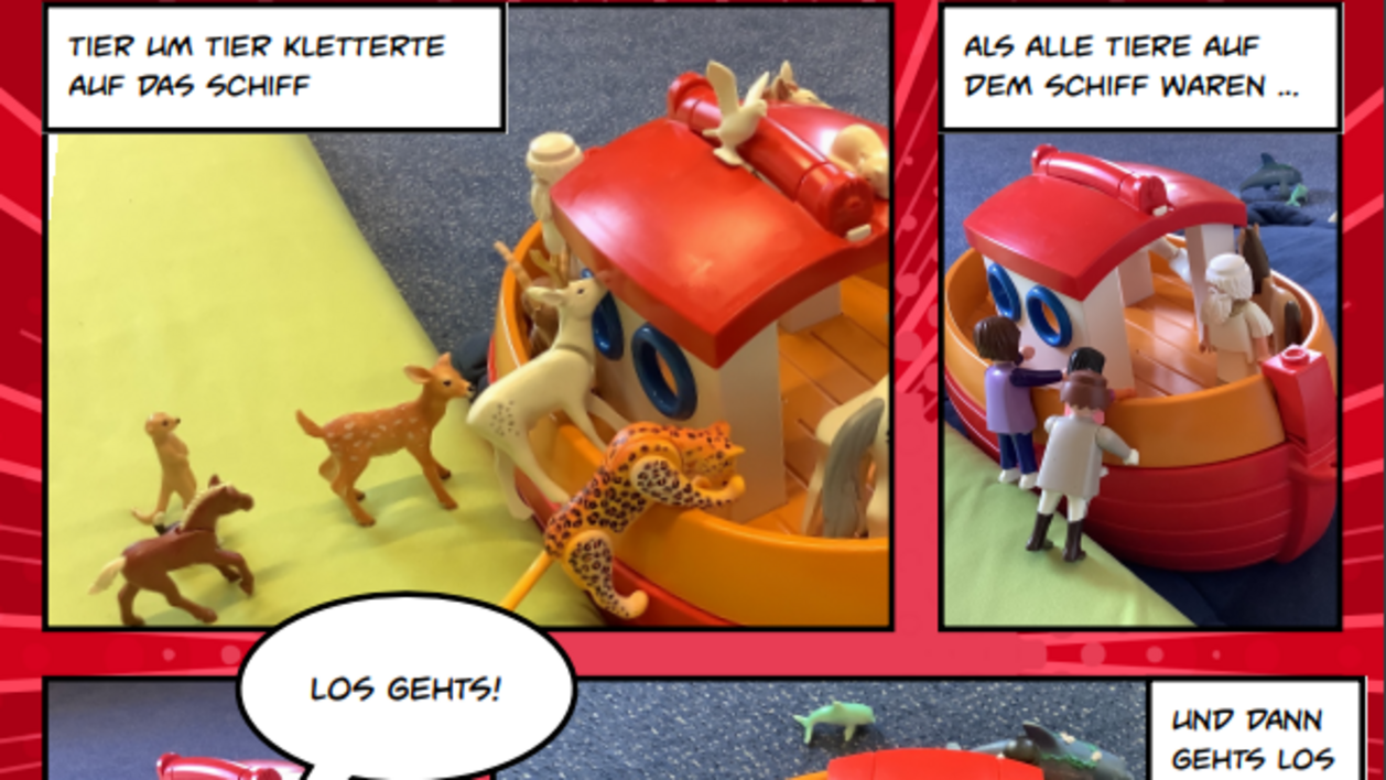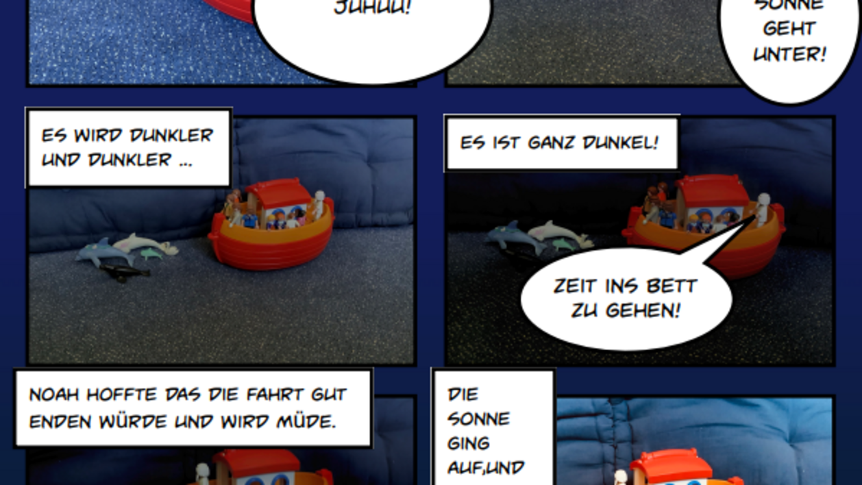 Kommunikation und Kooperation stehen im Mittelpunkt dieser Digitalen Lernaufgabe. Die Schülerinnen und Schüler wählen in ihrer Lerngruppe eine Bibelstelle und setzen die Inhalte in Form eines Comics um. Sowohl die Planung und Strukturierung als auch die kreative Umsetzung erfolgen kooperativ. Das Vorgehen wird in Form einer Mindmap gemeinsam von der Gruppe festgelegt. Der Bibeltext wird in Sinnabschnitte eingeteilt und in Fotos mit Spielfiguren dargestellt. Die Fotos werden in einem Comic zusammen mit passenden Dialogen und Erzähltexten präsentiert. Abschließend teilen, bewerten und analysieren die Lernenden ihre Arbeitsergebnisse auf einer digitalen Pinnwand. Somit werden alle Teilschritte dieser Digitalen Lernaufgabe dem Zielbereich Peergroup gerecht.