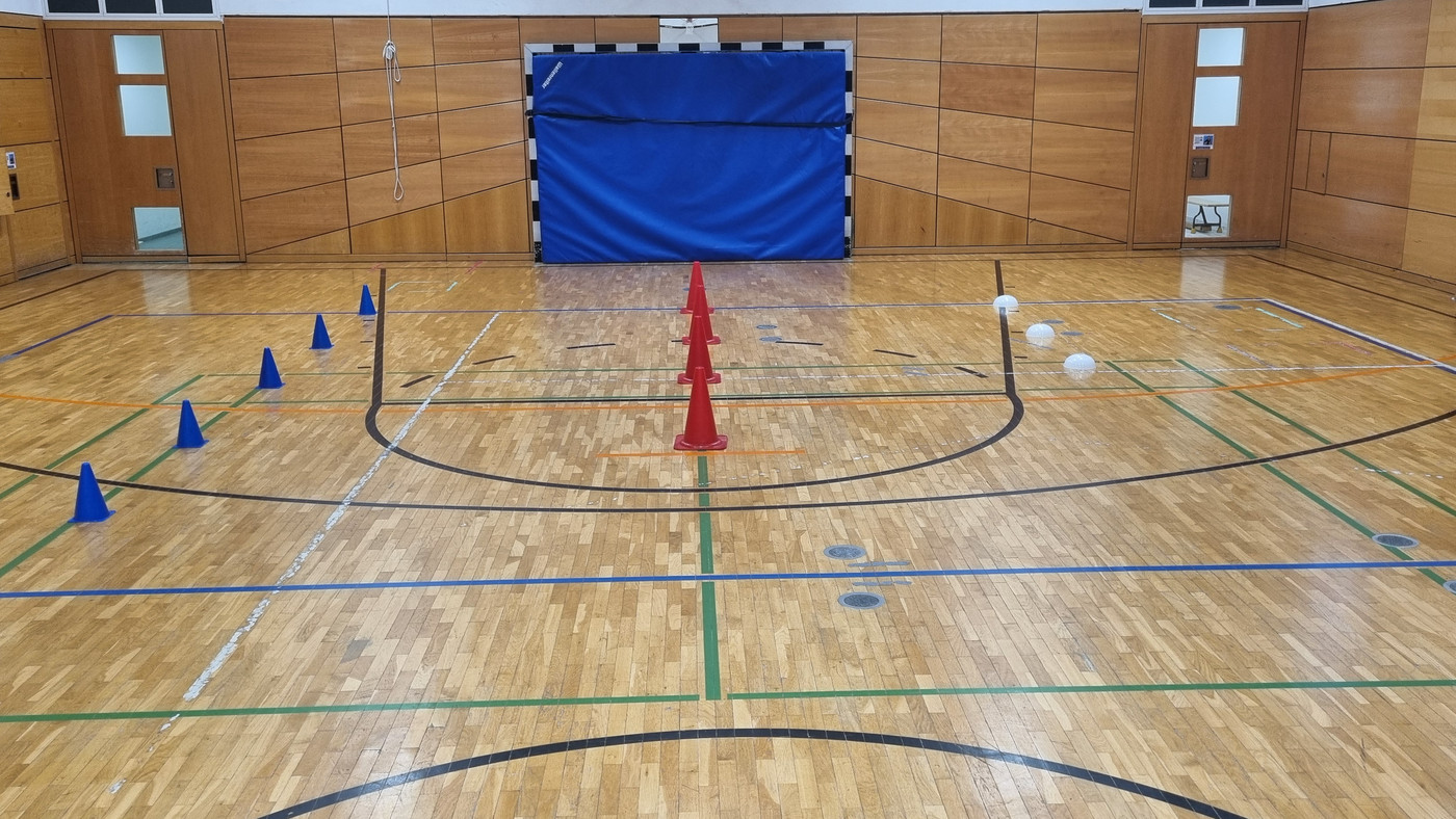 Durchführung: Die Schülerinnen und Schüler bewältigen die gleiche Kernaufgabe. Durch die Variation in Höhe, Ziel oder Entfernung kann die Anforderung an die individuellen körperlichen Bedürfnisse angepasst werden.