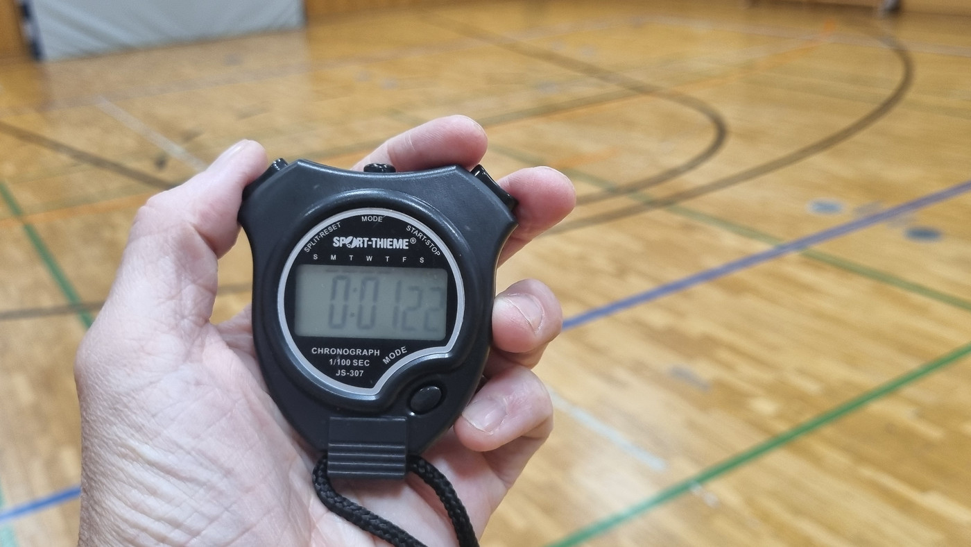 Hier im Bild: Bei einer Aufgabe, die in einer bestimmten Zeit zu bewältigen, wird diese Zeit auf Basis der jeweiligen motorischen Vorausetzungen individuell für die Sportlerinnen und Sportler oder für Gruppen vergleichbaren motorischen Voraussetzungen festgelegt.