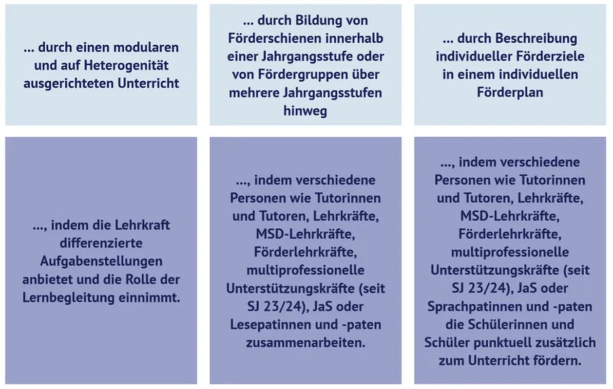 - eine sich steigernde Intensität der Förderung gemäß den Bedürfnissen der einzelnen Schülerinnen und Schülern zu gewährleisten.