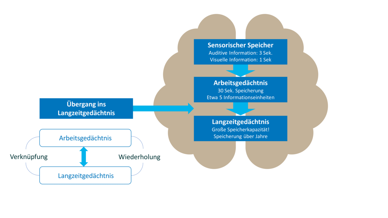 Es gibt zwei grundlegende Methoden, um Informationen vom Arbeitsgedächtnis ins Langzeitgedächtnis zu transferieren: durch Wiederholen und durch Verknüpfen von alten mit neuen Informationen.