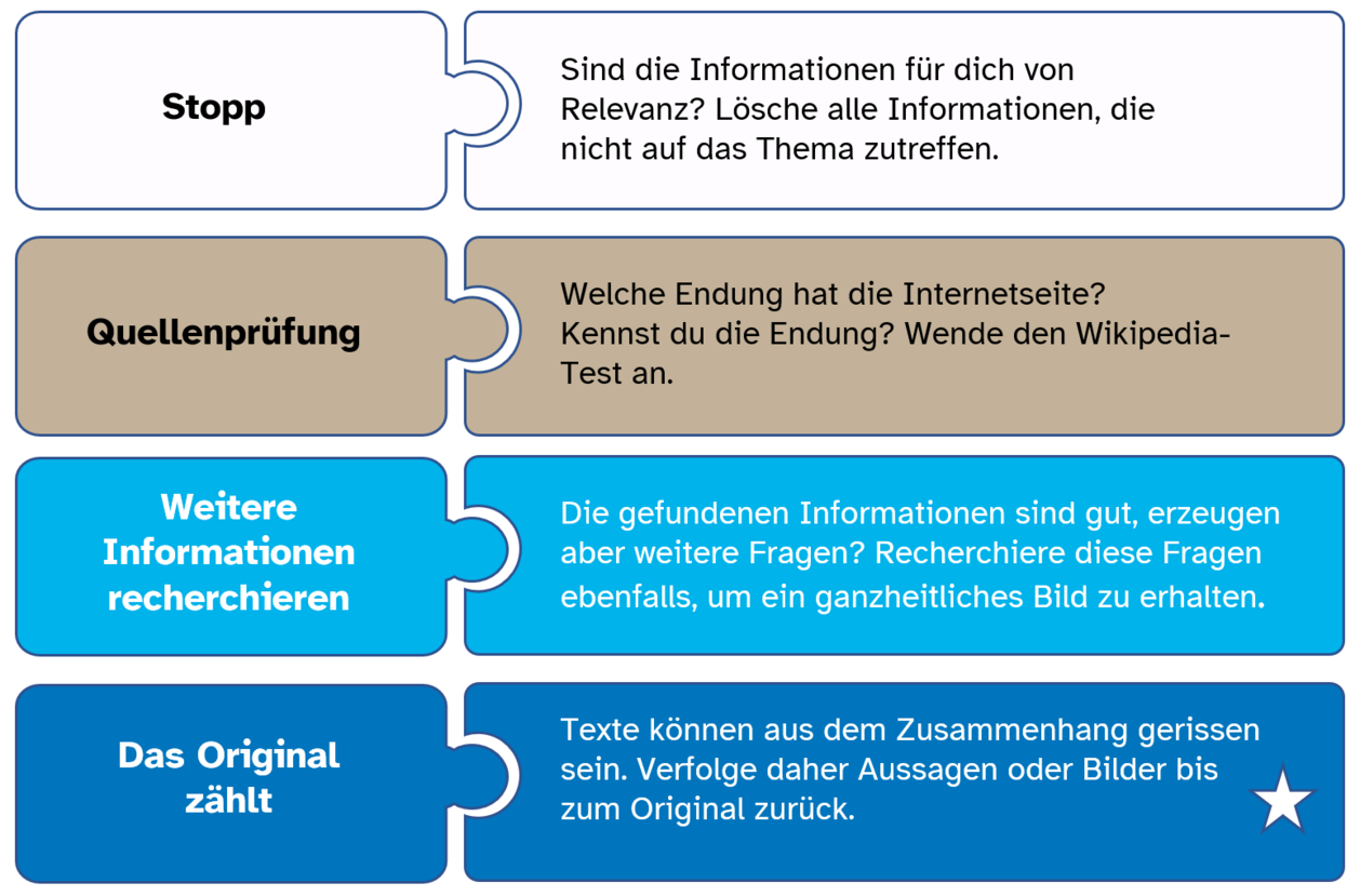 Sind die Inhalte einer Seite korrekt? Stimmen die Fakten und Zahlen? Bereits während der Recherche können die Schülerinnen und Schüler diese Fragen mithilfe einfacher Werkzeuge beantworten. Das schärft die kritische Auseinandersetzung mit Informationen.