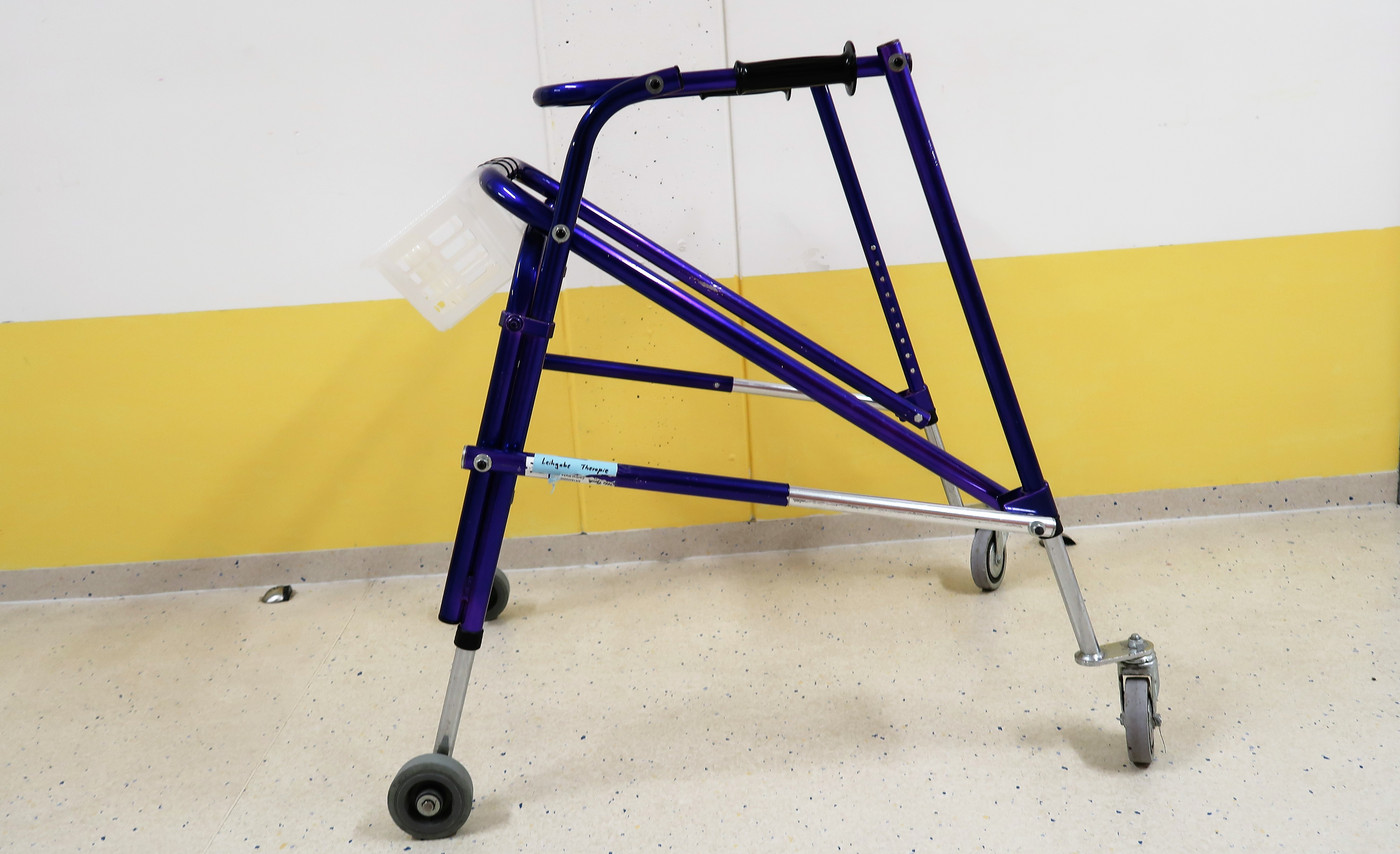 Hier im Bild: Ein Rollator ermöglicht, auch längere Gehstrecken zu bewältigen. Ebenso ermöglicht er längeres Stehen, so dass etwa bei einer Schiedsrichterolle das Spielfeld - im Vergleich zum Sitzen - besser überblickt werden kann.